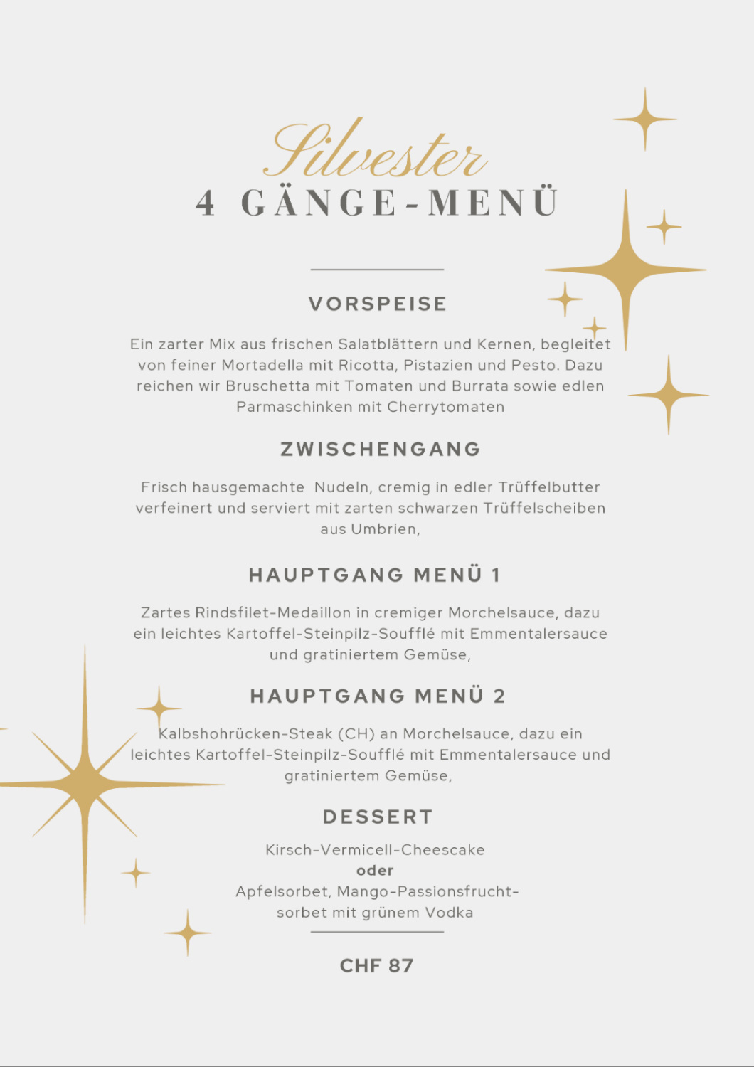 Rindsentrecote auf heissem Stein mit Kräuterschaum, Beilage nach Wahl.